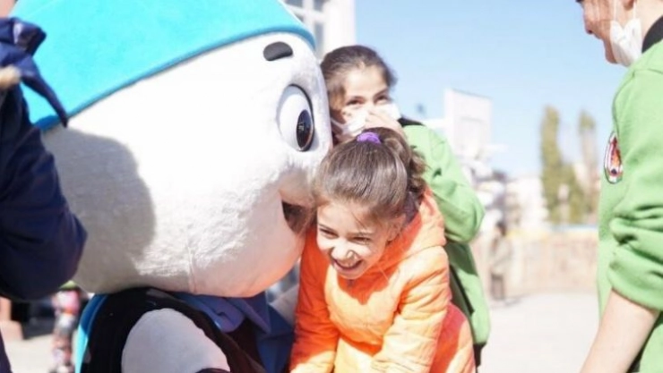 Palandöken Gençlik Merkezi Liderlerinden Fırat Ceyhan ile Halil Yazıcıoğlu koordinatörlüğünde gerçekleştirilen etkinlikte 2017 EYOF maskotu ‘Karbeyaz’da Horasanlı çocukların ilgi odağı oldu.