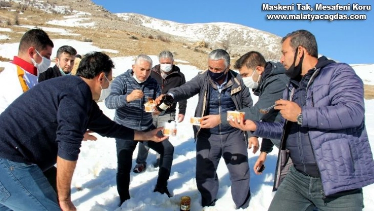 Adıyaman İnternet Yayıncıları ve Gazeteciler Derneği Başkanı Metin Harıkçı ise konuşmasında, “Harika bir doğal güzellik var. Buranın yöresel, katıksız, orijinal, organik şekilde yapılmış olan pekmezini kar ile karıştırarak karlambaç ikram ettiler” diye konuştu.