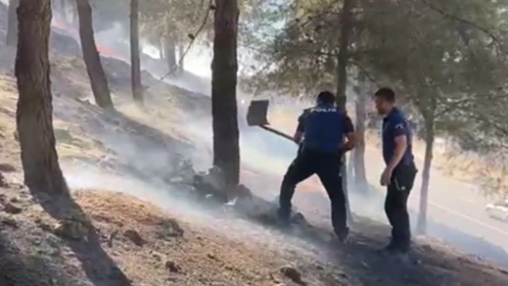Orman yangınını polisler söndürdü