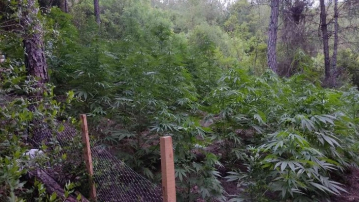 Ormanlık alana ekilen kenevirlere bakım yaparken suçüstü yakandılar