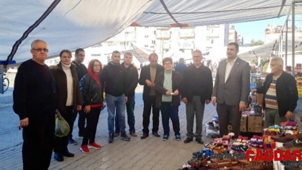 İlçe Başkanı Tezcan, ilçe genelinde ve giysi pazaryerinde esnafları ziyaret etti. Tezcan, pazaryeri esnafı ve vatandaşlarla sohbet etti.