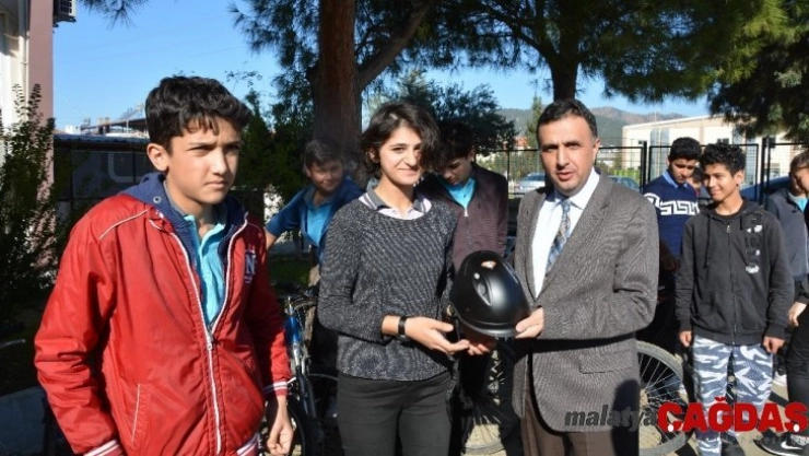 Proje kapsamında ilçedeki beş okulda öğrencilere kask hediye edildi. Lise öğrencilerine yönelik kask kullanımına dikkat çeken broşürler dağıtıldı.