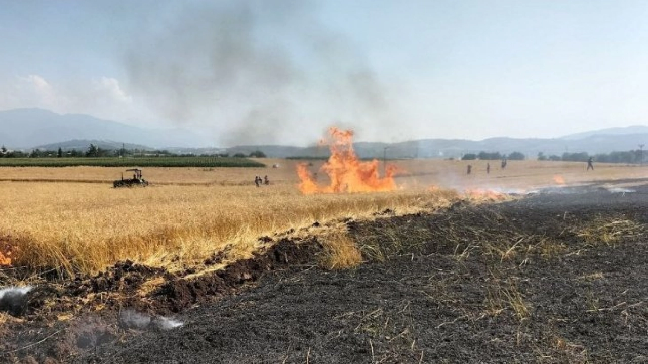 Öte yandan hasat edilmiş tarlalarda da etkili olan yangında çiftçilerin hazır hale getirilmiş saman balyalarını traktör yardımıyla kurtarırken yangının etkili olduğu tarlada da traktörlerle kanallar açılarak yangının etkisi azaltılmaya çalışıldı.