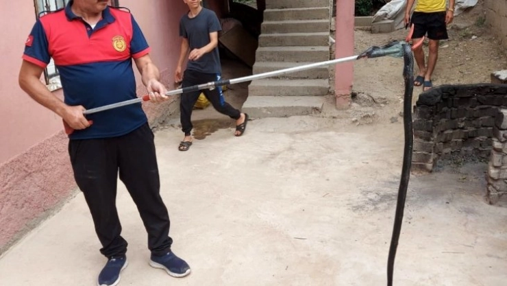Osmaniye'nin Kadirli ilçesinde bir eve giren yılan itfaiye ekiplerince yakalanarak doğal yaşam ortamına salındı.