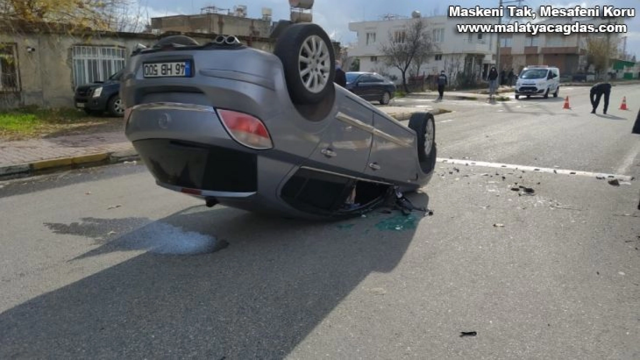 Adıyaman'da, bir otomobille çarpıştıktan sonra takla atan aracın kaza anı kameralara saniye saniye yansıdı. Kazada 4 kişi yaralandı.