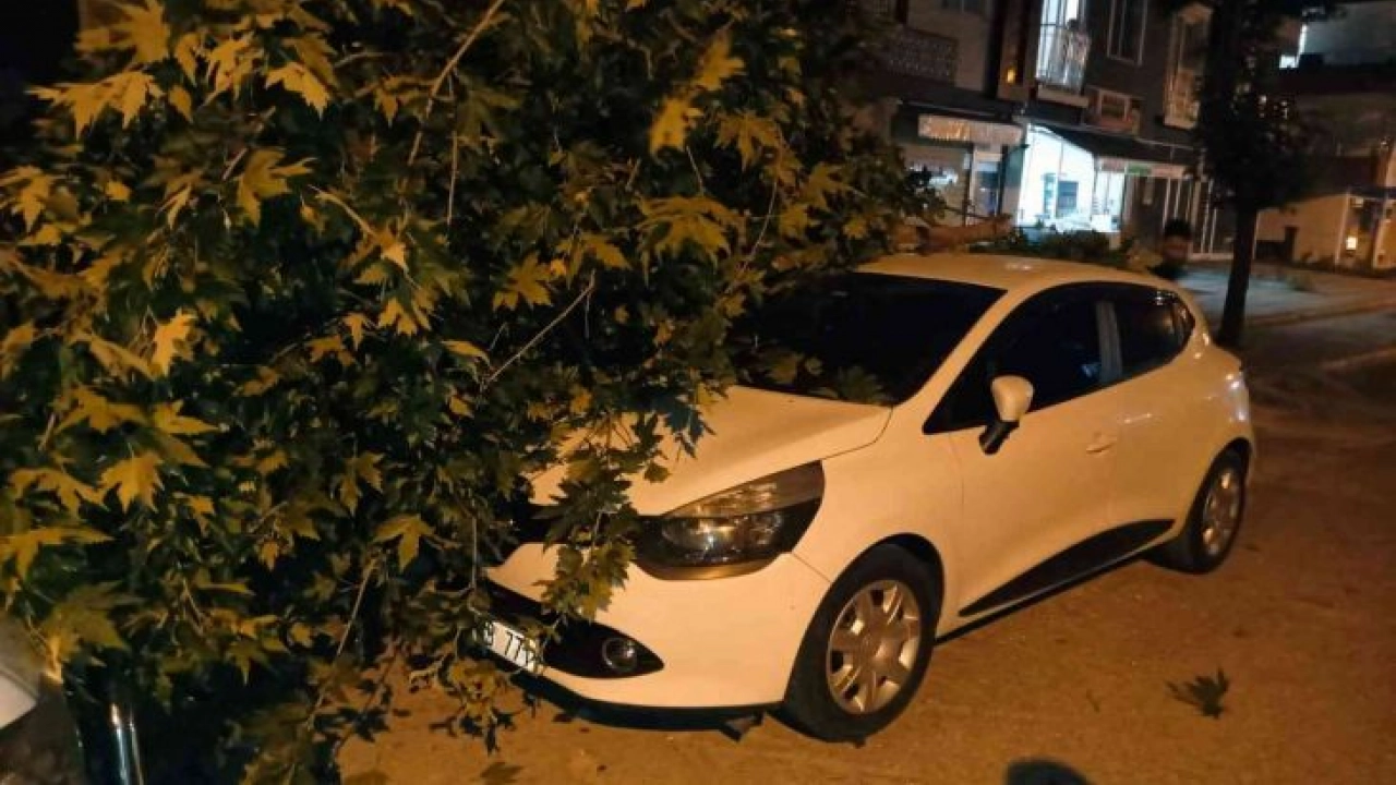 Adıyaman'da rüzgara dayanamayarak kırılan ağaç dalının üzerine düştüğü otomobil zarar gördü.
