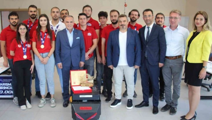 Geliştirdikleri Otonom Yük Taşıma robotuyla Sanayi de Dijital Teknoloji alanında birinci olan Yiğido adlı takım il protokolü ile bir araya gelerek projelerini anlattı.