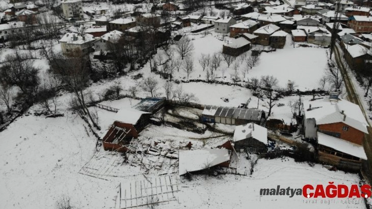 (Özel) Ahırın çatısı kara dayanamadı, 50'ye yakın koyun telef oldu