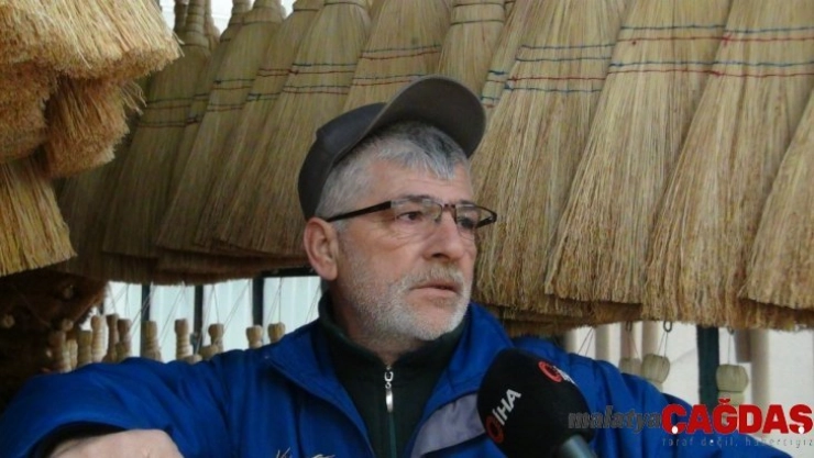 - (Özel) Aldığı otları işleyip süpürge haline getiriyor