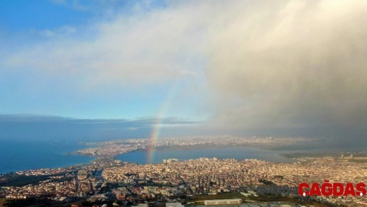 İstanbul'da sabah saatlerinde yer yer etkili olan yağmur, beraberinde gökkuşağının oluşmasına neden oldu. Havadan çekilen İstanbul semalarında oluşan gökkuşağı kartpostallık görüntüler oluştururken bir yandan ise karabulutların şehre doğru geldiği gözüktü.