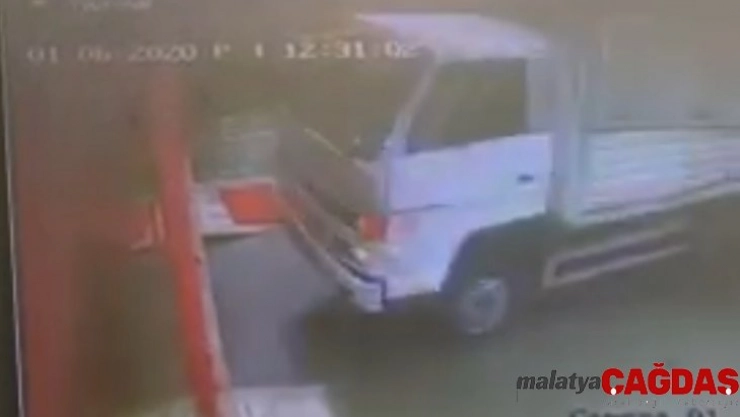 Ölen ya da yaralananın olmadığı kaza güvenlik kameraları tarafından da saniye saniye kaydedildi. Görüntülerde el freni çekilmeyen kamyonun markete daldığı anlar görülüyor.