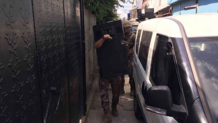 Adana polisi özel harekat katılımıyla gündüz vakti torbacı oldukları iddia edilen şahısların evine baskın yaptı.