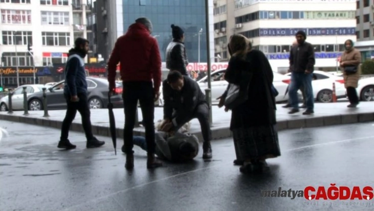 Olay, dün saat 15.00 sıralarında Şişli Mecidiyeköy Meydan’da meydana geldi. İddiaya göre meydanda çiçekçilik yapan 2 şahıs henüz bilinmeyen bir nedenle kavga etmeye başladı. Şahısların birinin elinde makas diğerinin elinde tenis raketi gören polis ekipleri, olaya hızlıca müdahale etti. Müdahale sonucu polis makaslı şahsı yere yatırarak etkisiz hale getirdikten sonra gözaltına aldı. Diğer şahıs da başka bir ekip tarafından gözaltına alınarak ifadeleri alınmak üzere polis merkezine götürüldü. Gözaltı işlemi esnasında polis ekiplerine zorluk çıkartan iki kadın da olay yerinden uzaklaştırıldı. Yaşanan hareketli dakikalar kameralara yansıdı.