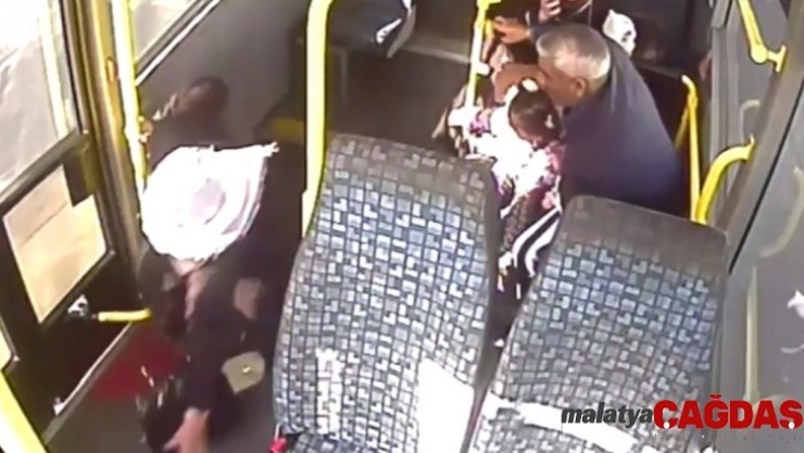 Öte yandan, minibüsün ani fren yapmasıyla yaşlı kadının basamaklara düştüğü anlar minibüsün güvenlik kamerasına anbean yansıdı. Görüntülerde otomobil hatlı minibüsün önüne geçerek bir anda duruyor. Minibüsçünün de ani fren yapmasıyla arka koltukta oturan kadın minibüsüm basamaklarına düşerek kafasını vuruyor. Ardından minibüs sürücüsü aracını hastanenin aciline hızla sürüyor.