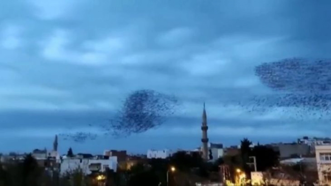 Şanlıurfa’nın Siverek ilçesinde, sığırcık kuş sürüleri son bir haftadır, sabah erken saatlerinde gökyüzünde görsel şölen oluşturuyor.