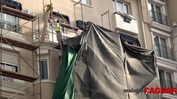 Taksim'de bir binanın dış cephe çalışmaların tamamlanmasının ardından işçilerin herhangi bir güvenlik önlemi almadan metrelerce yüksekteki iskeleyi sökmeye çalışması tehlikeye davetiye çıkardı.