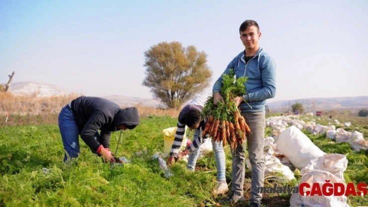 Havuç üreticisi Erhan Kızılay, 1 yıl boyunca aralıksız havuç üretiminin olduğunu belirterek kış havuç hasadının güzel başladığını söyledi. Havaların mevsim normallerinin üzerinde gitmesi, yağış olmaması gibi durumların havuç üretimini etkilemediğini vurgulayan Kızılay, en zor dönemlerin toprak üzerinin buz tuttuğu dönemler olduğunu aktardı. Tarlada çalışan işçilerin tamamının Suriyeli vatandaşlardan oluştuğunu belirten Kızılay, “Hasadımız güzel başladı. Bir sıkıntımız yok. Şartlar yoğunlaşacak ama bizim de buna karşı tedbirimiz var. Havaların sıcak gitmesi bizi şu anda etkilemiyor. Kış hasadında dönüm üzerinden ortalama 6-7 tonluk bir verim bekliyoruz. Şu anda bizimle birlikte 30 işçi çalışıyor ve çoğu Suriyeli. Suriye’den geldiler, burada çalışıyor. Kış hasadı olduğu için yağmur, çamur oluyor. İşçiler soğuk havalarda çalışmak istemiyor, günler kısa sürüyor, pazarda da belli başlı sıkıntılar yaşıyoruz. Bizim 365 gün havucumuz var. Havuç kış ürünü. Biz Şubat, Mart ayına kadar hasadımızı yapıyoruz. Bu aylardan sonra depoda kalan havuçlarımızı sunuyoruz. Haziran ayında taze ürünümüz çıkıyor ve böylece devam ediyoruz” dedi.