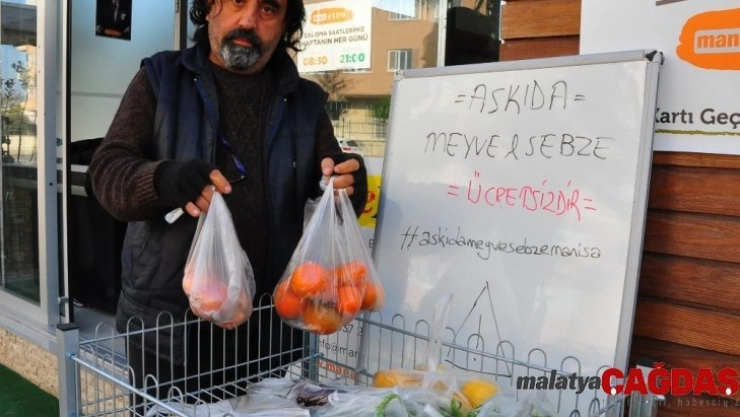 Manisa’nın Şehzadeler ilçesinde ’Manav Extra’ adlı işletmenin sahibi Ahmet Peyk, “Askıda meyve, sebze” uygulaması başlattı. Uygulamayla özellikle üniversite öğrencileri başta olmak üzere ihtiyaç sahipleri hayırseverler tarafından bırakılan meyve ve sebzelerden istifade edebiliyor. Hayırseverlerin parasını verdiği meyve ve sebzeleri poşetleyen işletme sahibi, manavın giriş kapısı önündeki üzerinde ücretsiz yazılı reyona bırakıyor. İhtiyaç sahibi öğrenci veya aileler, istedikleri meyve ve sebzeyi bu reyondan alabiliyor. 4 aydır devam eden proje kapsamında başta üniversite öğrencileri olmak üzere yüzlerce dar gelirli ailelerin yüzü güldü.