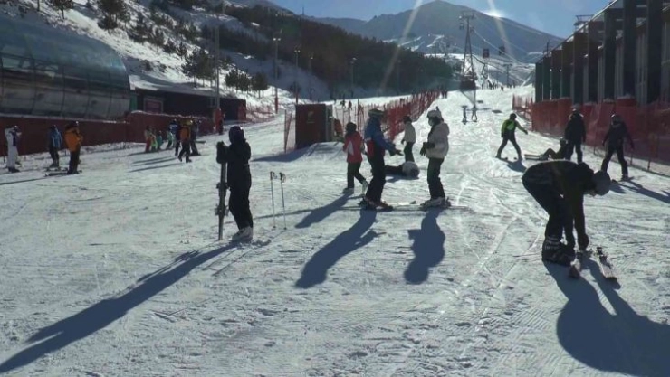 Palandöken Kayak Merkezinde hafta sonunda düşe kalka kayak keyfi yaşanıyor.