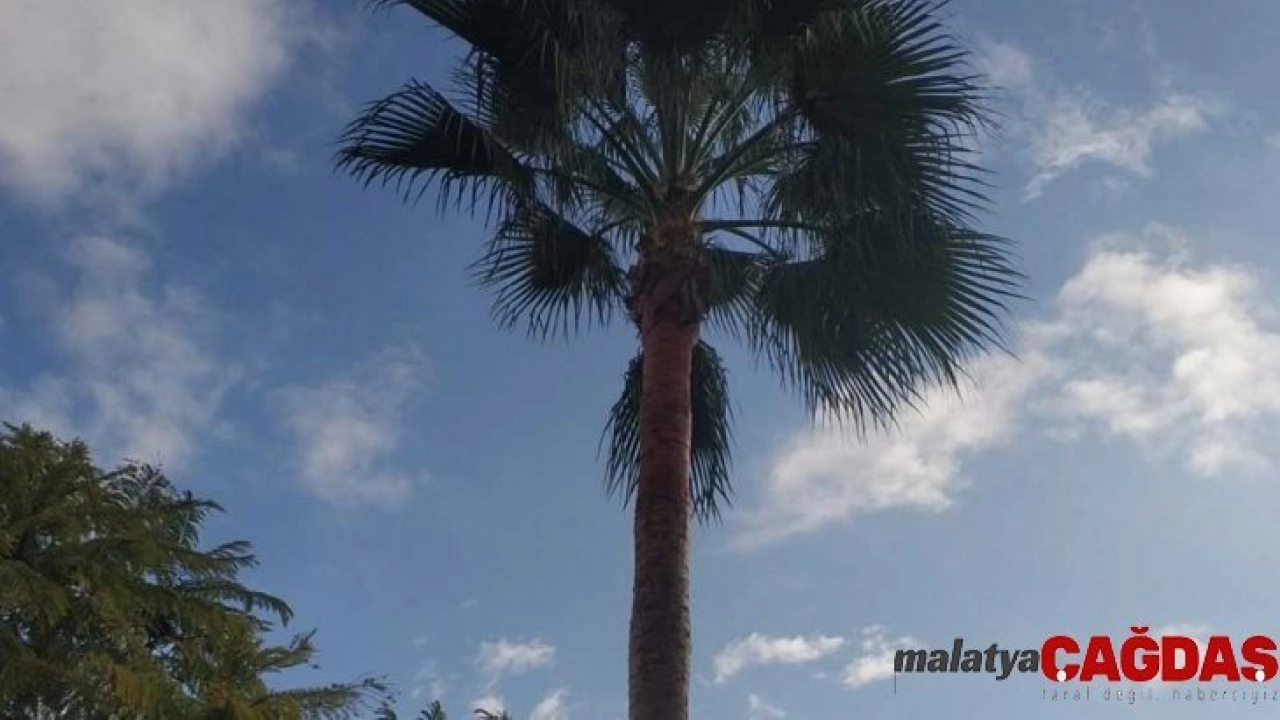 Palmiye ağacında mahsur kalan kedi kurtarıldı