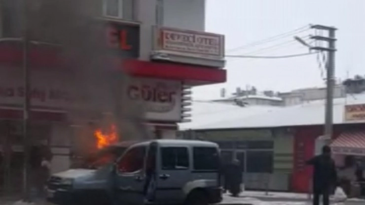 Edinilen bilgilere göre yangın, sabah saatlerinde kentin en işlek caddelerinden Atatürk Caddesi üzerinde meydana geldi. Cadde üzerinde park halinde bulunan bir hafif ticari araç alev alev yanmaya başladı. Yanan aracı fark eden bir vatandaş yangın tüpüyle yangına müdahale etti. Aracın alev alev yandığı anlar bir vatandaş tarafından cep telefonuyla görüntülendi.