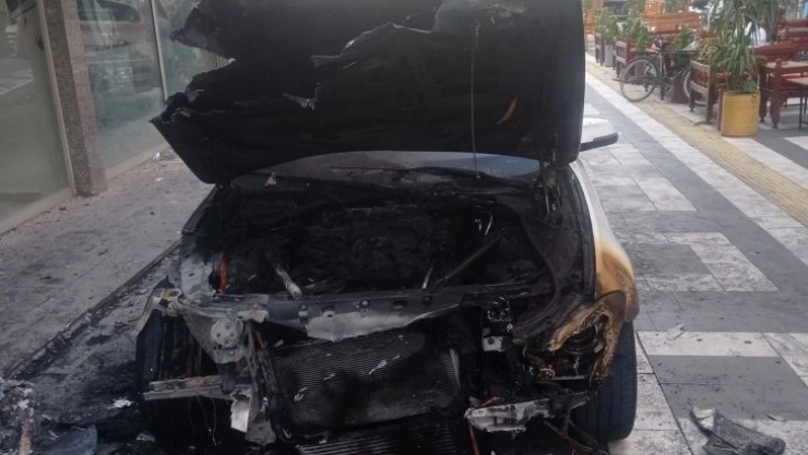 Adıyaman’da, park halindeki otomobil alev alev yanarak kullanılamaz hale geldi.