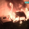 Sivas'ta park halindeki pikap tarzı araç alev alev yandı, o anlar kameraya anbean yansıdı.