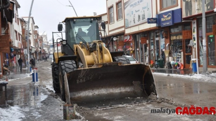 Pasinler Belediyesi karla mücadele ekipleri, yoğun kar yağışının ardından kar temizleme çalışmalarına başladı.