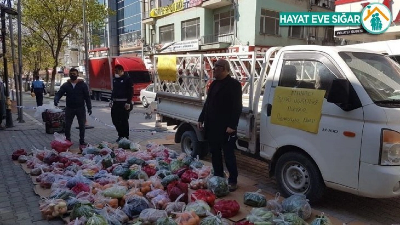 Ankara'nın Polatlı ilçesinde kurulan pazarda ihtiyaç sahiplerine ücretsiz sebze ve meyve dağıtımı yapıldı. Türkiye Sebzeciler, Meyveciler ve Seyyar Pazarcılar Federasyonu Başkanı Ali Karaca tarafından organize edilen sosyal sorumluluk kampanyası tüm Türkiye'de aynı anda başladı. Yeni tip korona virüs (Covid-19) salgını süresincinde pazarcı esnafı olarak ihtiyaç sahipleri ailelere yardımcı olmak için böyle bir kampanya başlattıklarını belirten Karaca, Cumhurbaşkanı Recep Tayyip Erdoğan tarafından Biz Bize Yeteriz Türkiyem sloganıyla başlatılan Milli Dayanışma Kampanyası'na bu şekilde destek verdiklerini bildirdi.Tüm Türkiye'de bu kampanyanın başladığını belirten Karaca, '' Türkiye'deki bütün pazarcı esnafımız Türkiye genelinde pazar girişlerine sebze ve meyve koyarak yardıma ihtiyacı olan bütün halkımıza destek vermek amacıyla kampanya başlattık. Sayın Cumhurbaşkanımızın biz bize yeteriz kampanyasına Türkiye'deki yüzbinlerce pazarcı esnafı olarak bizde destek veriyoruz. Pazar yerlerimizin giriş noktasına sebze ve meyve ihtiyacı olan herkese bu yardımı yapacağız. Böyle bir günde birlik ve beraberlik zamanı. Devleti yaşatki devlet yaşasın. Devlet varolsun. Bizlerde sayın Cumhurbaşkanımızın kampanyasına destek oluyoruz. İnşallah kazasız belasız bu cennet vatanımız bu illetten kurtulur' sözlerine yer verdi.İhtiyaç sahibi aileler başta Polatlı pazarı olmak üzere tüm Tükiye'de ki pazar girişlerinde sebze ve meyve yardımı alabiliyorlar ifadesini kullandı.