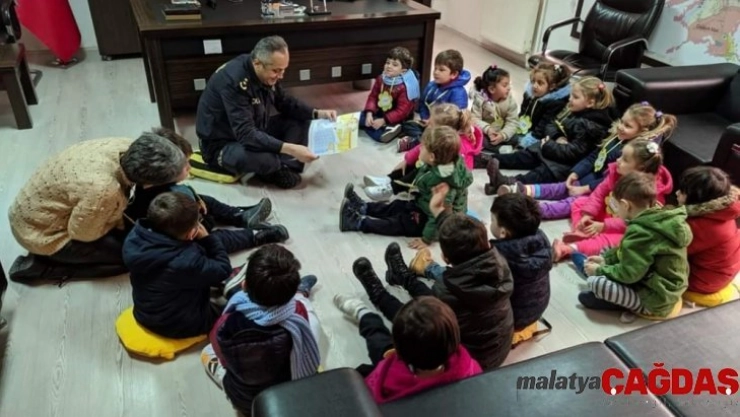 Samsun'da bir ilçe emniyet müdürü kendisini ziyarete gelen anaokulu öğrencileri ile makamında yere oturup onlara kitap okudu.