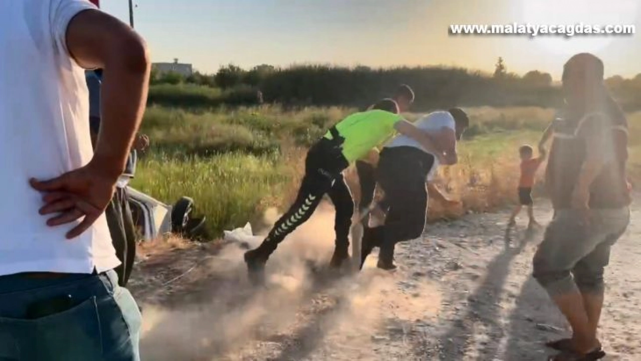 Kazayı gören polis ekipleri araçtakilere yardım etmek için olay yerine gitti. Araçta 2 kişinin olduğunu belirleyen polis ekipleri, sağlık ve itfaiye ekiplerine haber verdi. Olay yerine giden itfaiye ekipleri, ters dönen otomobildeki iki kişiyi çıkartarak sağlık ekiplerine teslim etti. Sağlık ekipleri yaptıkları kontrolde şahısların yaralı olmadığını tespit etti.