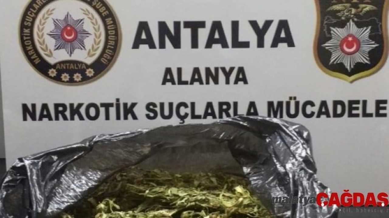 Alanya Cumhuriyet Başsavcılığının koordinesinde Alanya İlçe Emniyet Müdürlüğü Narkotik Suçlarla Mücadele Grup Amirliği ekipleri, uyuşturucu madde ticaretinin ve kullanımının engellenmesine yönelik çalışmalarını sürdürdü. Ekipler yaptıkları çalışmalarda şüphe üzerine Konaklı Mahallesi D-400 üzerinde seyir halinde olan otomobil takibe aldı. Polis bir süre takip ettiği aracı durdurarak arama yaptı. Yapılan aramalarda 2 poşet içerisinde toplam 114 gram esrar ele geçirirken, olayla ilgili A. Ü. (32) ve G. G. (41) gözaltına alındı. Gözaltına alınan 2 şüpheli polis merkezindeki işlemlerinin ardından ‘uyuşturucu madde ticareti yapmak’ suçundan adliyeye sevk edildi.