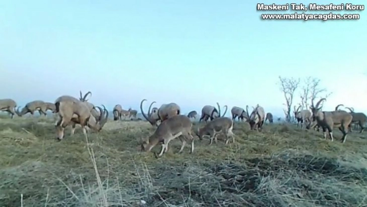 Elazığ'da popülasyonu her geçen gün artan dağ keçileri, doğaya bırakılan yemleri yerken foto kapan ile görüntülendi.