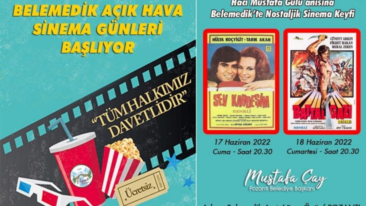 Belemedik Anıt Ağacı altında gerçekleştirilecek etkinliğin ilk gösterimi 17 Haziran Cuma günü saat 20.30’da “Sev Kardeşim” adlı sinema filmi ile başlayacak. 18 Haziran Cumartesi günü ise yine aynı saatte “Battal Gazi” filmi gösterilecek.