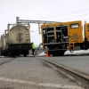 Raydan çıkan yük treninin bir kısmı karayolunda kaldı