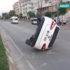 Adıyaman'ın Gölbaşı ilçesi Atatürk Bulvarı üzerinde refüje çarpan otomobil devrildi.