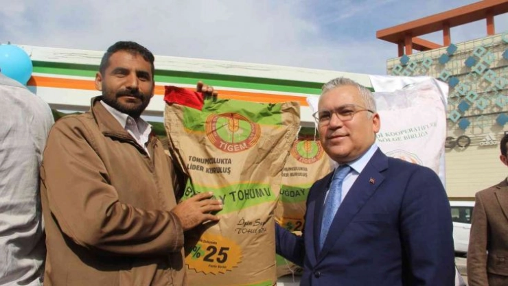 Konuşmaların ardından bazı çiftçilere tohum dağıtımı yapıldı. Ardından toplam bin 153 ton buğday ve arpa tohumu çiftçilere teslim edilmek üzere tırlarla yola çıktı.