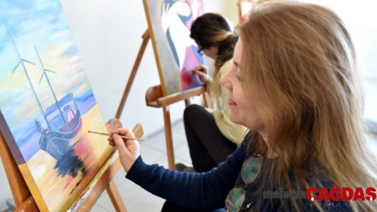 Tepebaşı Belediyesi Hedef Batıkent Belde Evi’nde yetişkinlere yönelik açılan resim kursuna katılan kadınlar, hem resim yapmanın tekniklerini öğreniyor hem de sosyalleşiyorlar.