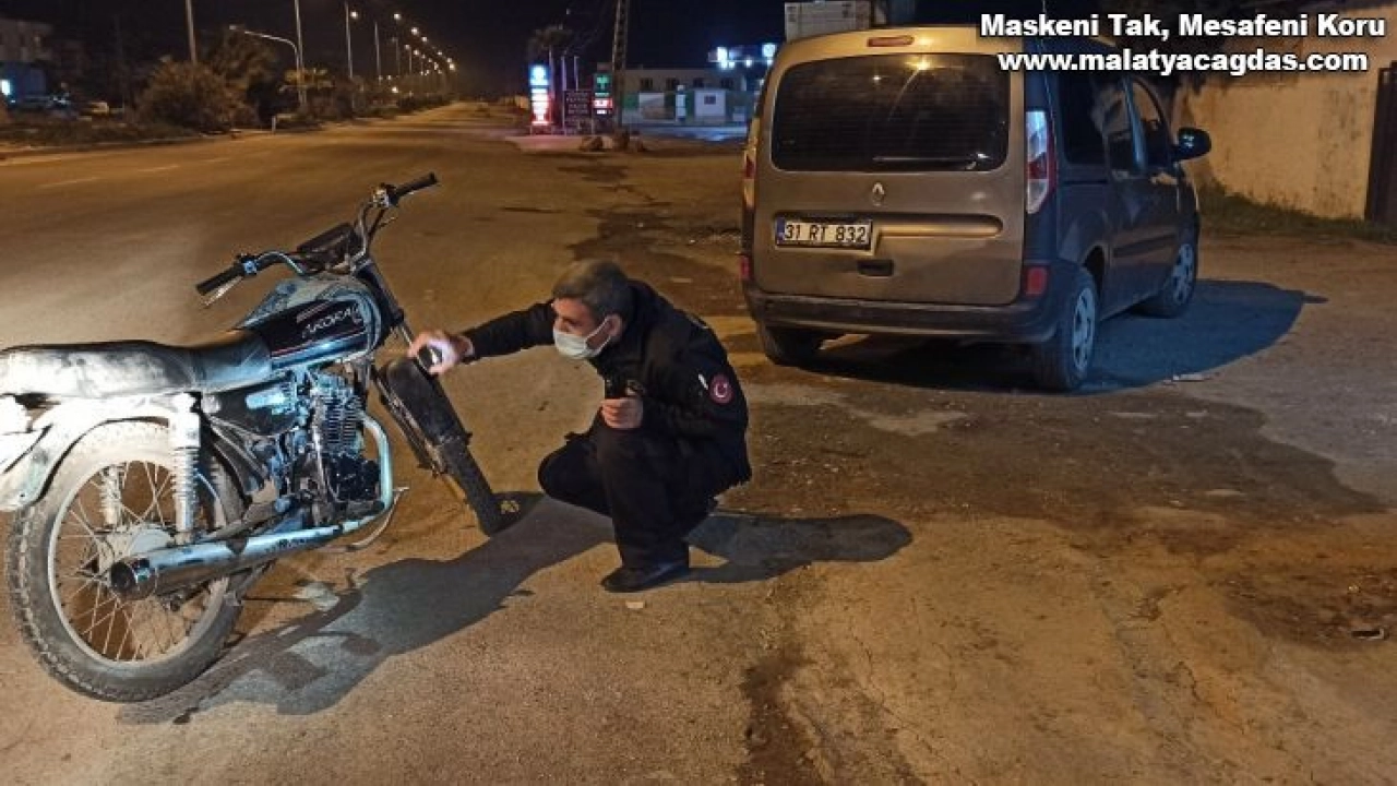 Alınan bilgiye göre Cüdeyde mahallesi Ertuğrul Gazi caddesi üzerinde kısıtlama denetimi yapan polis ekipleri gece saat 00.30 sıralarında şüphelendikleri 31 F 3053 plakalı motosikleti durdurdu.