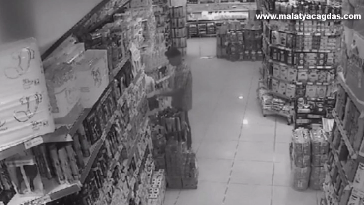 Adıyaman'da bir markete giren şahıs, reyonda bulunan parfümleri koklayarak çalıp götürdü.