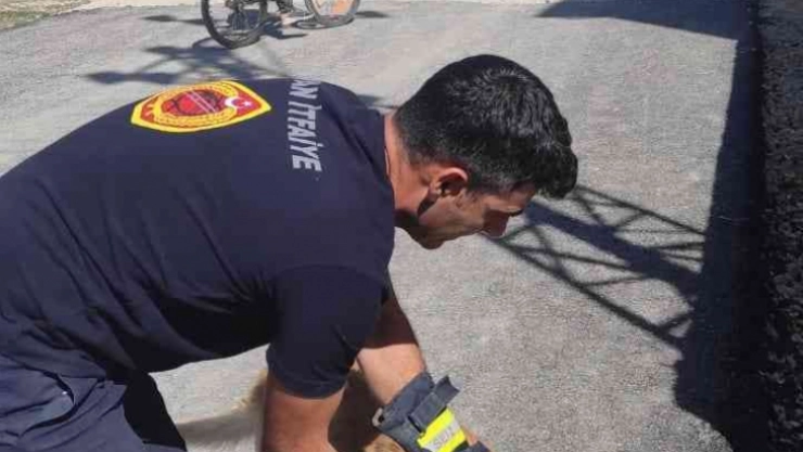 Van’ın Muradiye ilçesinde rögara düşen köpek, itfaiye ekipleri tarafından kurtarıldı.