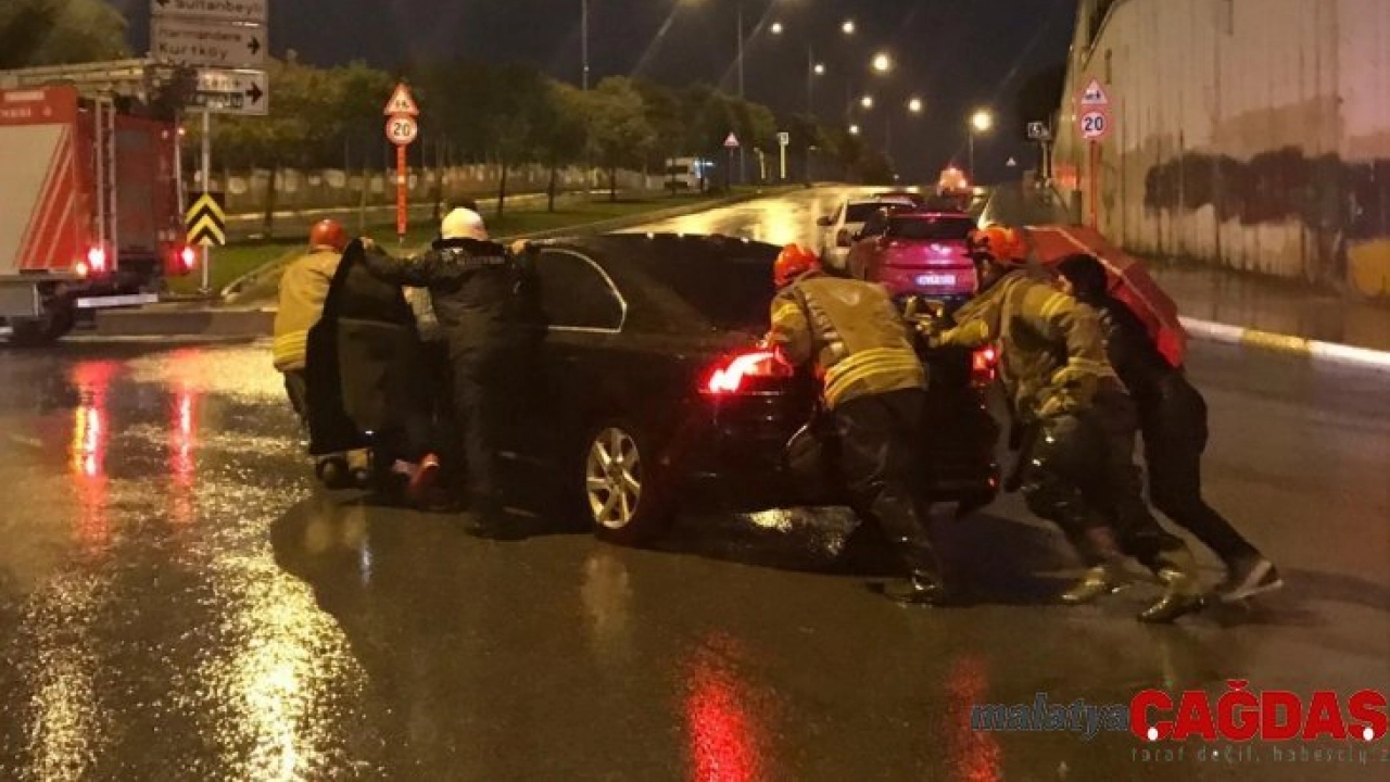 Olay, saat 22.00 sıralarında Pendik ilçesi Yenişehir Mahallesi Cumhuriyet Bulvarı’nda meydana geldi. Etkili olan sağanak sonrası göle dönen yolda iki otomobil mahsur kaldı. Araçlar içerisinde bulunan toplam 4 kişi kendi imkanlarıyla kurtulurken itfaiye ekipleri kısa sürede olay yerine geldi. Ekiplere bağlı kurtarıcı aracıyla göle dönen yoldaki otomobiller de mahsur kalanları kurtarmaya gelen ekipler, kendi çabalarıyla çıkan kişileri güvenli bölgeye çekerek araçları suyun içerisinden çıkarttı. Yolun göle dönmesine neden olan su birikintisi yaklaşık üç saatlik bir çalışmayla temizlenirken itfaiye erleri de araçların birikintiye girmesine izin vermedi. Yaklaşık bir metrelik su birikintisinin içinde kalan otomobillerde maddi hasar oluştu.