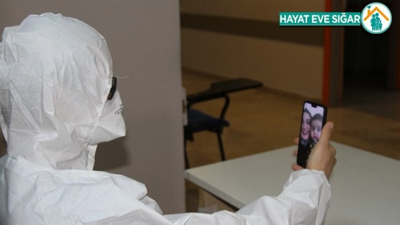 Uzun süredir çocuğunu göremeyen hemşir Göl, eşinin Hemşireler Günü’nü kutladı. Duygu dolu anların yaşadığı görüntülü telefon görüşmesinde baba Göl’ün hemşire eşine, “İnsanlar dikkat ederse biz de evimize erken döneriz” demesi tedbirlerin önemini bir kez daha ortaya koydu.