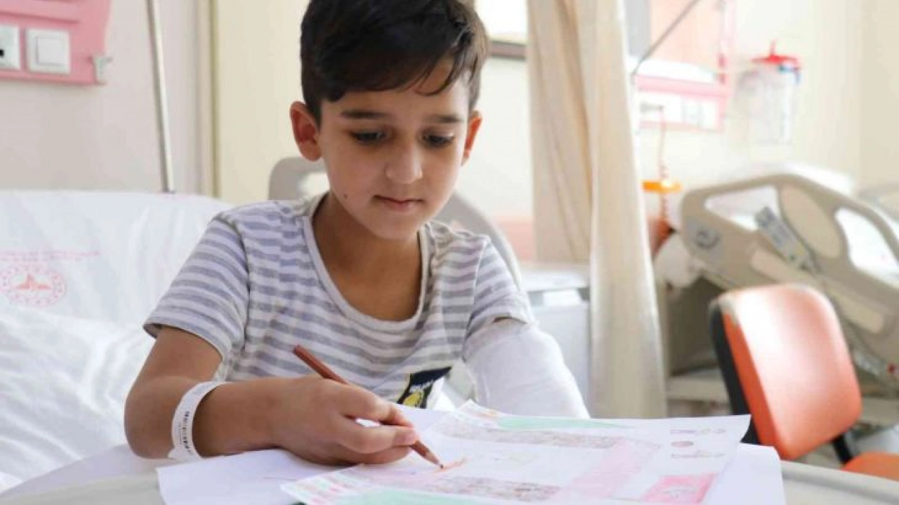 Ortopedi servisinde tedavi gören hasta 7 yaşındaki Musa Albouzan, maç oynarken kolunun kırıldığını belirterek, hastanedeki görevlilerin kendisine boya kalem ve kağıt vermesiyle hem acısını unuttuğunu hem de resim çizmenin mutluluğunu yaşadığını ifade etti. Hastanede görevli hemşire İlkay Kılıç, çocukların acısını biraz da olsun unutturmak adına kalem kağıt verdiklerini ve çocukların resim çizerken mutlu olduklarını görünce sevindiklerini söyledi. Kılıç, çocuklara kalem ve kağıt verme fikrinin nasıl başladığı hakkında bilgi vererek, “Bir gün hastamız yanında çocuğu ile birlikte gelmişti. Çocuk babasının ameliyat olacağı için üzülüyordu. Bize sitem ediyordu. Babamın canını acıtacaksınız diye. Biz de çocuk üzülmesin, oyalansın diye A4 kağıdı ile kurşun kalem verdik. Resim çizmeye başladı. Sonrasında bu fikir hoşumuza gitmeye başladı. Sonra renkli kalem aldık. Çocuklar çok mutlu oldu” şeklinde konuştu.