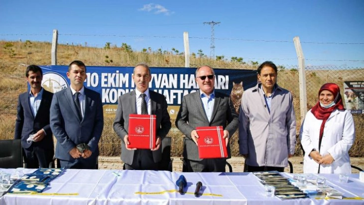 İmza töreni sonrası Başkan Bilgin ve Rektör Yıldız, hayvansever öğrenciler ile birlikte Sokak Hayvanları Bakım ve Rehabilitasyon Merkezi’ni ziyaret etti.