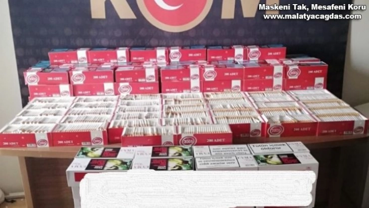 Malatya’da, iki iş yerinde yapılan aramalarda, 25 bin 440 adet içi tütün doldurulmuş makaron, 8 bin 400 adet sahte Bandorollü makaron ele geçirildi. Şüpheli 2 şahsa "5607 SKM" suçundan yasal işlem yapıldı.
