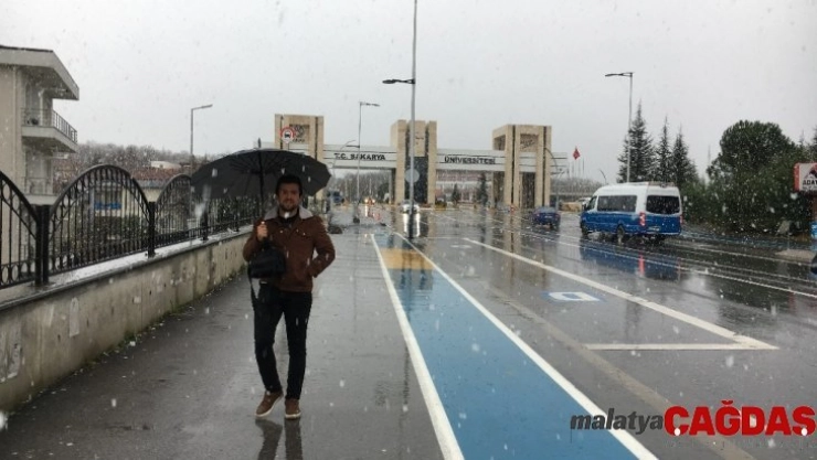 Sakarya Üniversitesi Kampüsü'nde mevsimin ilk karı yağdı
