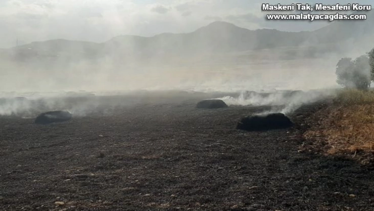 Adıyaman'da, bir arazi içerisinde bulunan saman balyaları çıkan anız yangınında küle döndü.