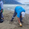 Hatay Büyükşehir Belediyesi Çevre Koruma ve Kontrol Daire Başkanlığı’nca oluşturulan ekipler de 14 kilometrelik Samandağ sahiline vuran partikülleri temizliği devam ediyor.
