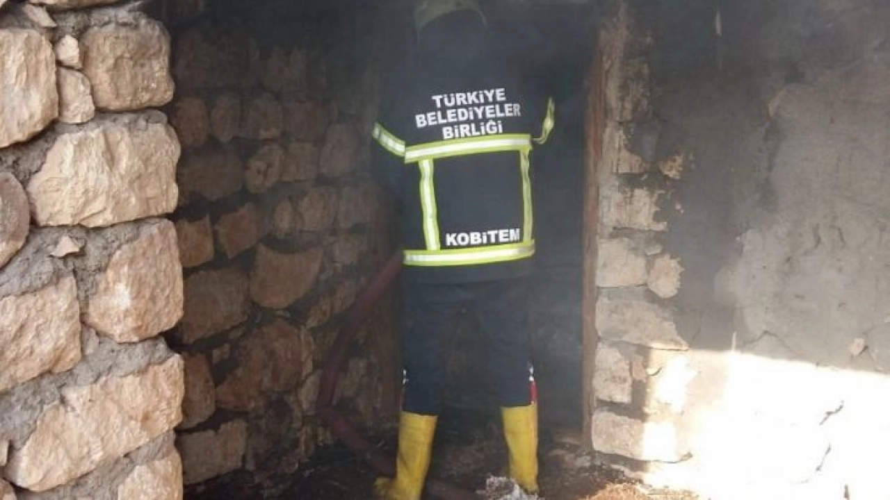 Adıyaman Besni ilçesine bağlı Oyratlı Köyünde samanlıkta çıkan yangın paniğe neden oldu